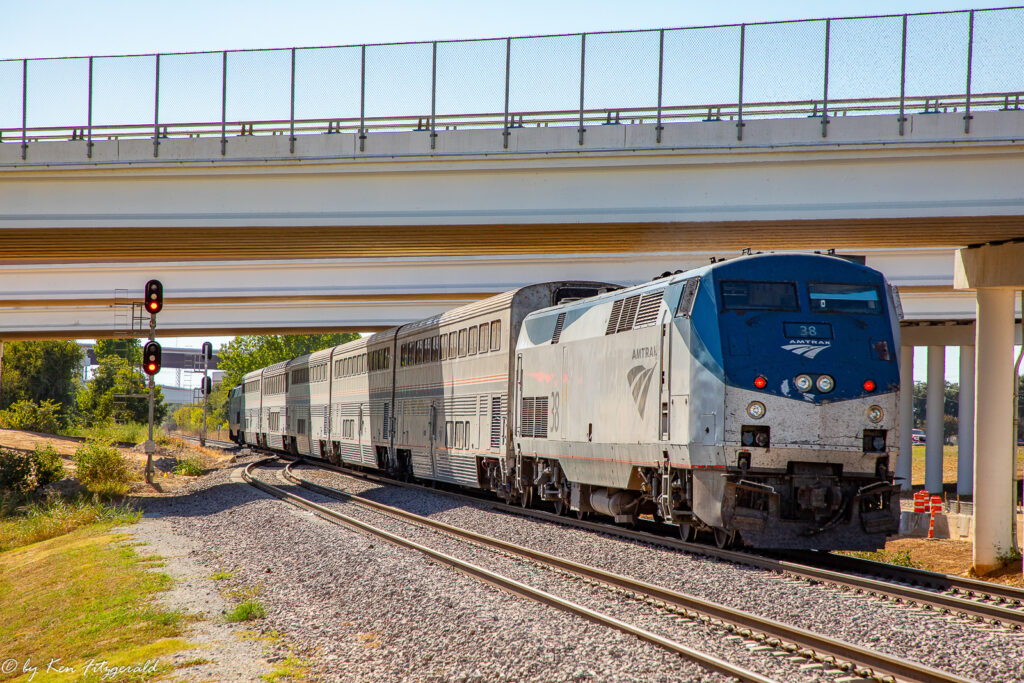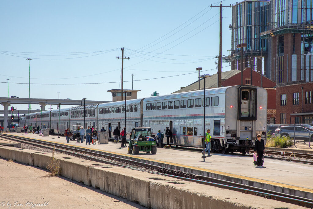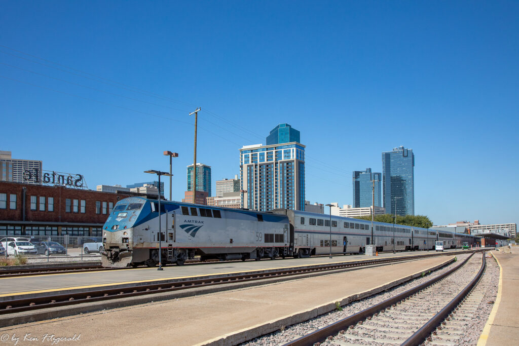 The University of Texas first played the University of Oklahoma on a football field in 1900, and the annual game has been played every year since then. It was no different in 2025 and the day before the game on 10/11/2025 the Heartland Flyer extended its Oklahoma City to Fort Worth run with an afternoon round trip to Dallas to drop off game patrons. I decided to catch all the passenger action in the Fort Worth area.
