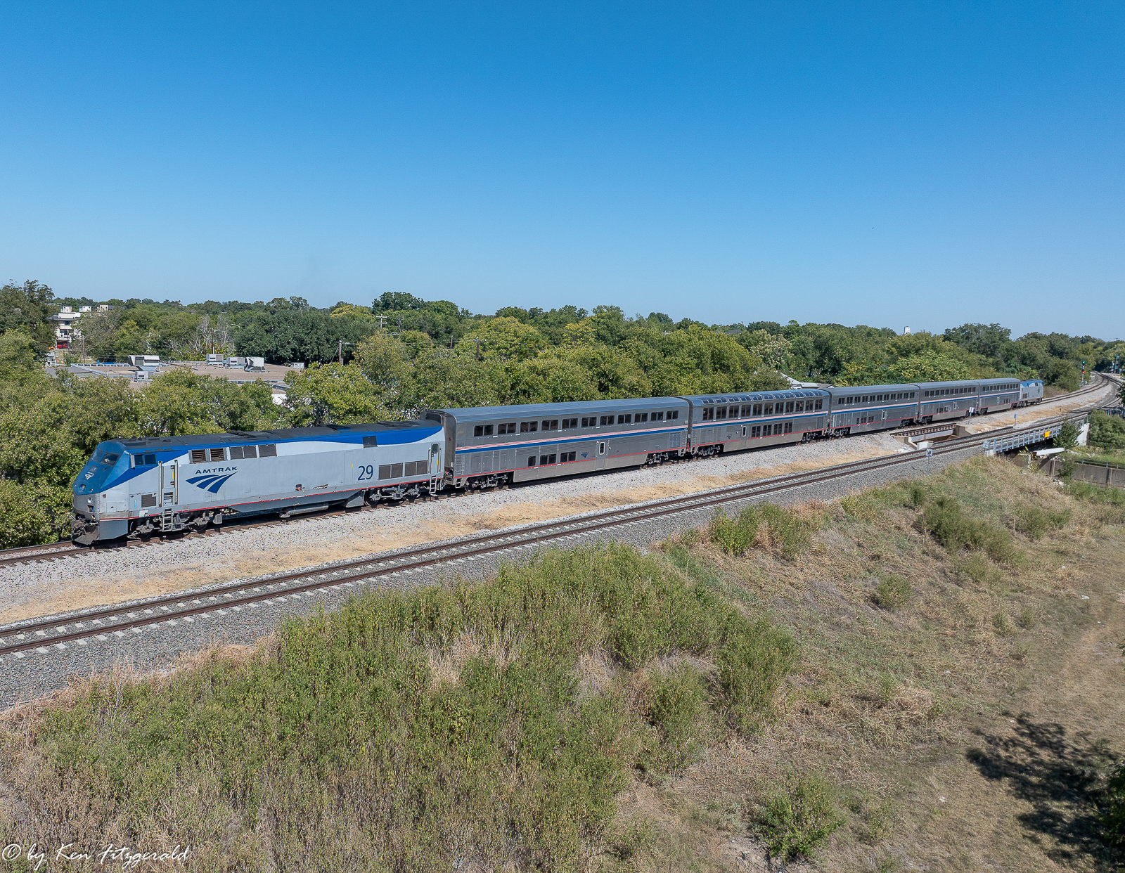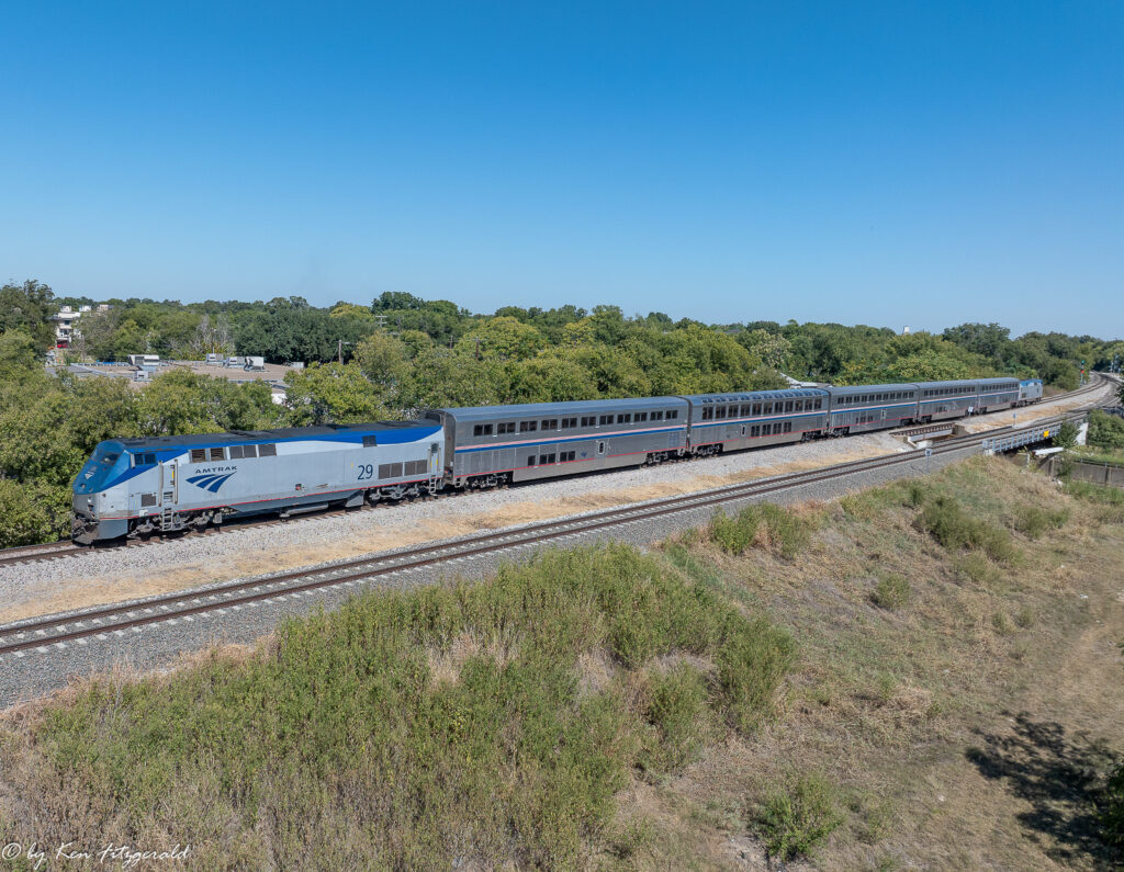 The Heartland Flyer departed Central Station beginning the Dallas round trip and I composed this drone view with Fort Worth in the background shortly afterwards at 1:52 pm.